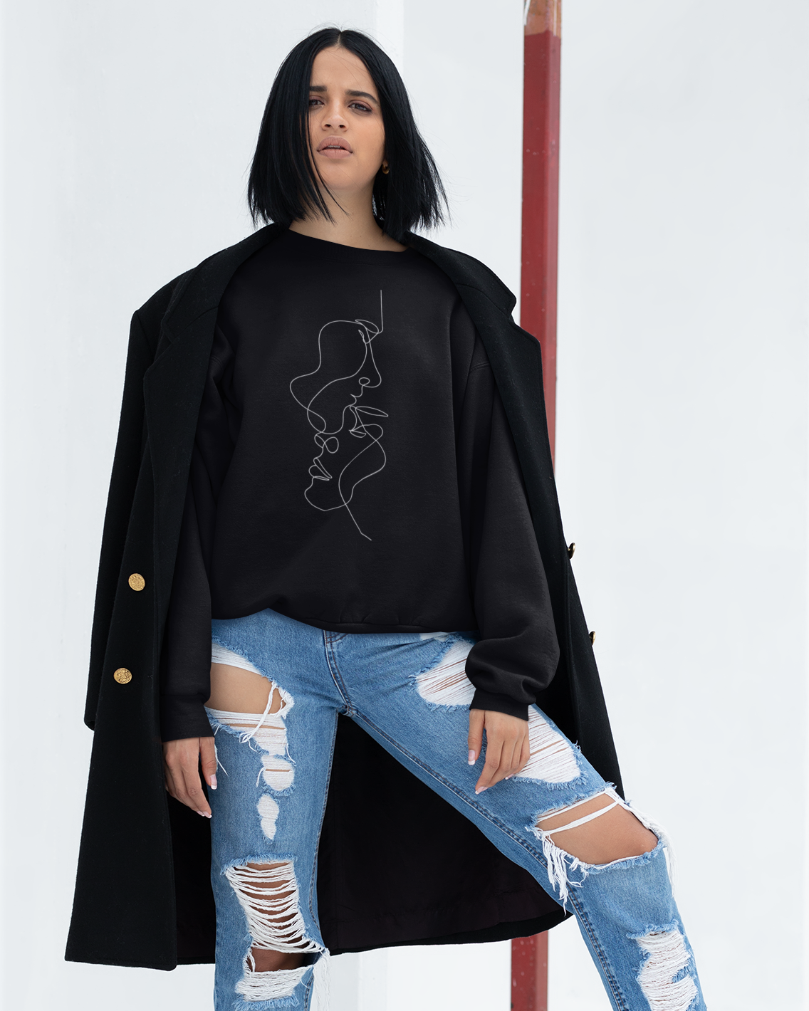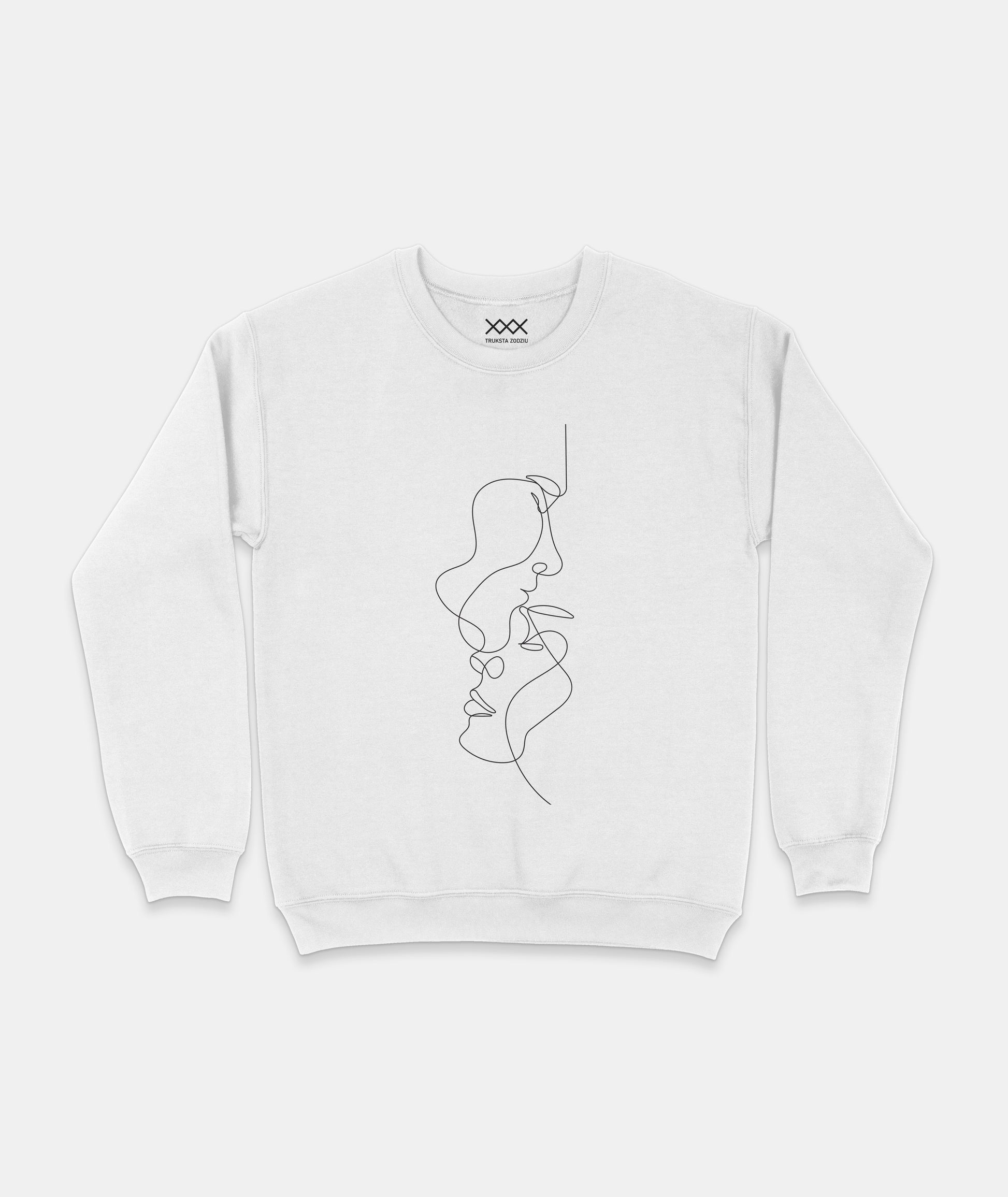 Meniškas ir originalus „one line“ džemperis, perteikiantis dviejų veidų sąsają minimalistiniu stiliumi. Stilingi laisvalaikio džemperiai su meniniais elementais tampa išskirtine aprangos detale, puikiai derančia prie šiuolaikinio miesto įvaizdžio.