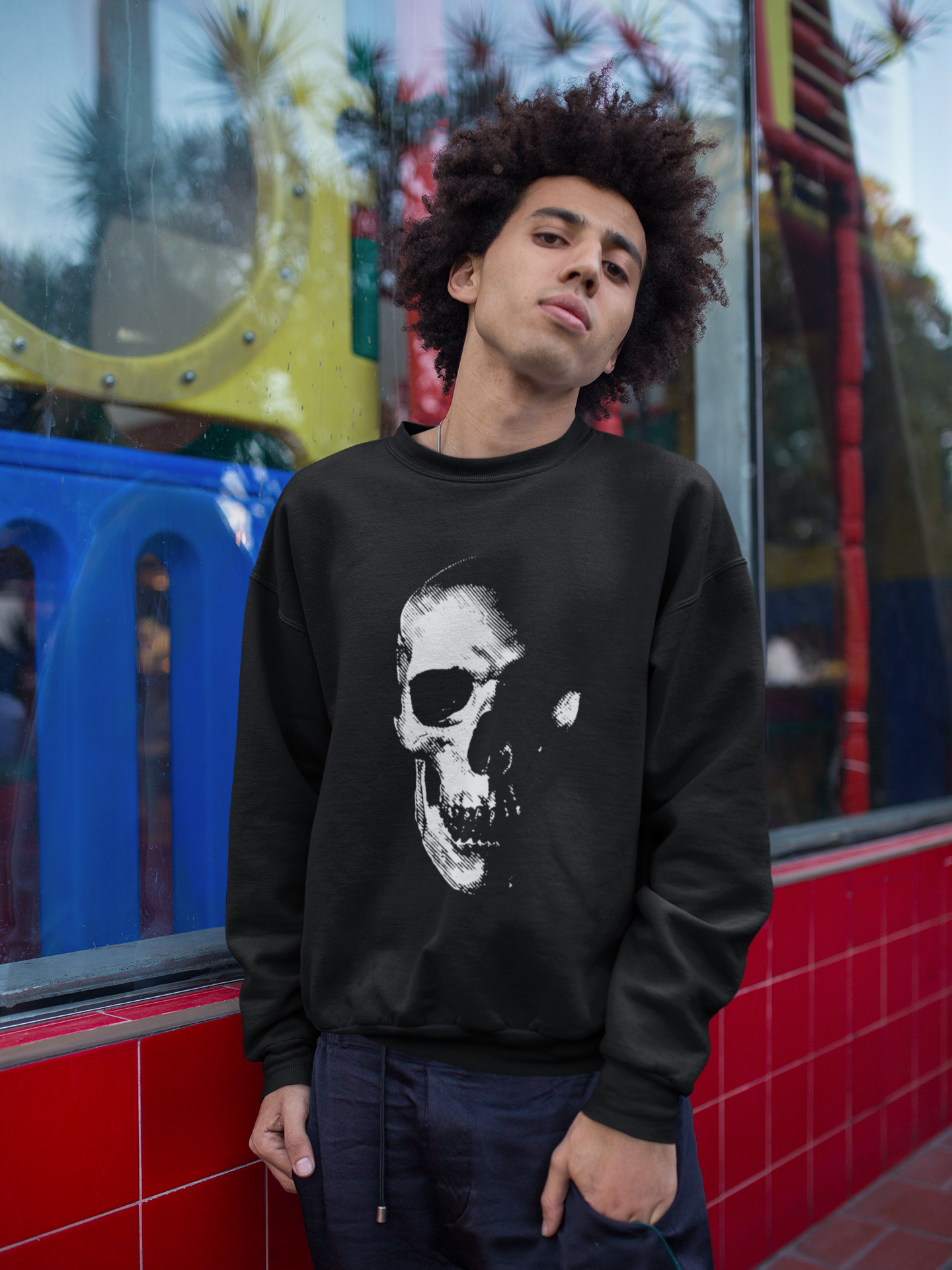 Meniškas laisvalaikio džemperis su kontrastinga kaukolės iliustracija, skirtas tiems, kurie ieško unikalaus įvaizdžio ir modernaus stiliaus. Stilingi laisvalaikio džemperiai su charakteringu piešiniu puikiai tinka baikeriams, alternatyvaus stiliaus mėgėjams ir tiems, kurie mėgsta neįprastus akcentus.