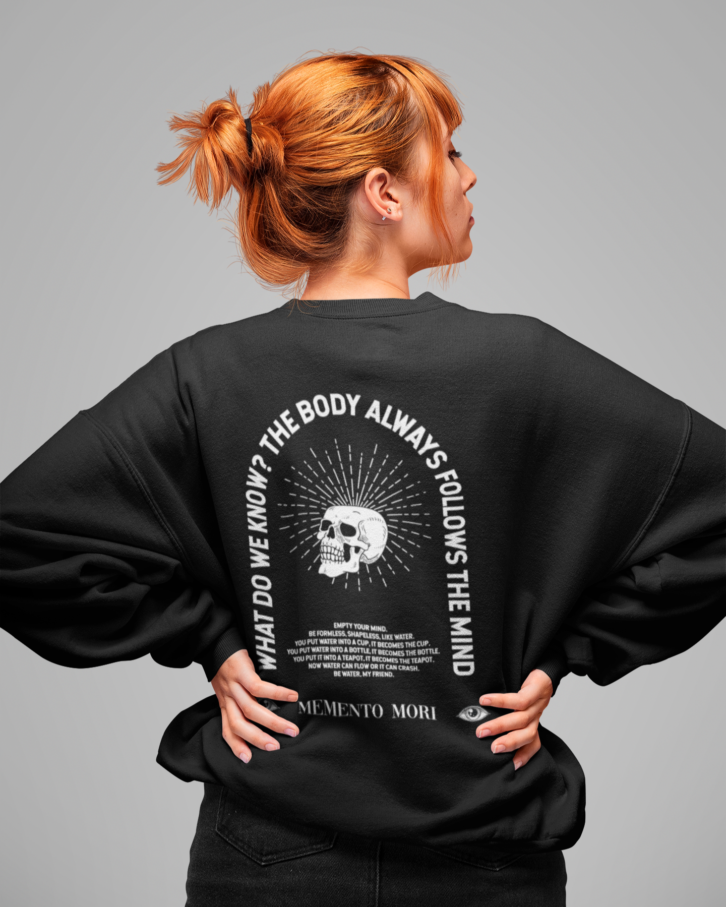 Šiuolaikiškas laisvalaikio džemperis „Memento Mori“ – simbolinis priminimas apie gyvenimo laikinumą ir sąmoningą kasdienybę. Išskirtiniai laisvalaikio džemperiai su filosofine žinute tampa puikia saviraiškos priemone tiems, kurie vertina gilesnes idėjas. Patogus džemperis ir estetiška spauda suteikia universalumo bei išskirtinumo kasdieniam dėvėjimui.
