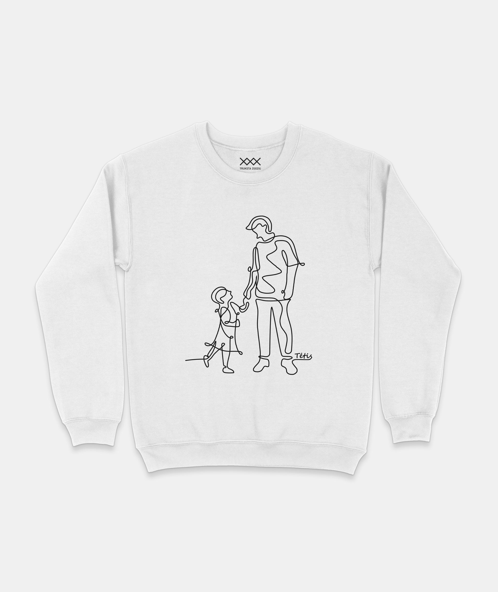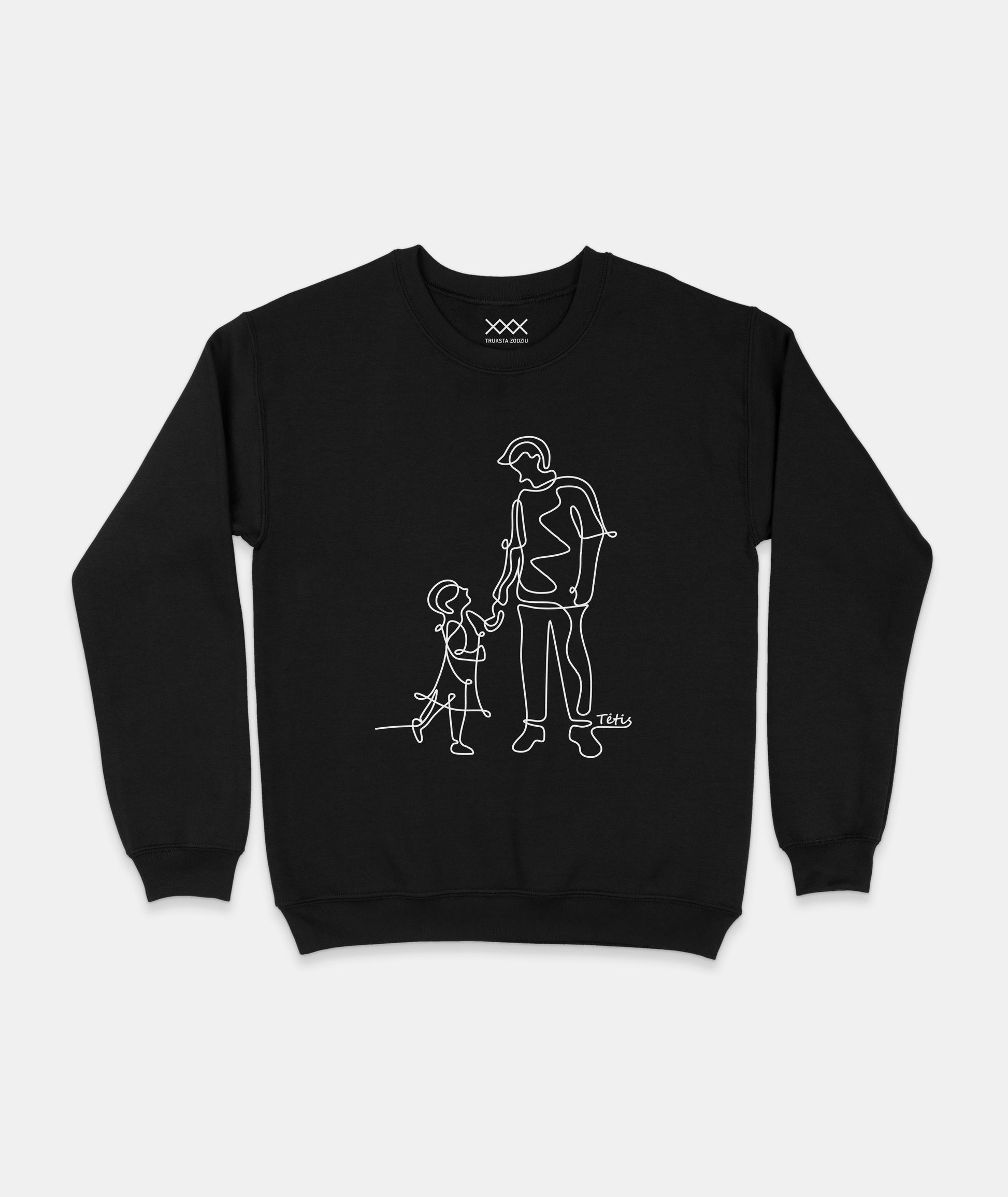 Džemperis su užrašu tėtis ir one line tėčio ir dukros piešiniu. Šis minimalistinis dizainas įkūnija akimirkas, kai mažos mergaitės rankytės įsikimba į tėčio delną, ir tuo metu juntamą besąlygišką meilę ir saugumą. Šis originalus džemperis Tėvo dienai skirtas norintiems padovanoti ne tik rūbą, bet ir prasmingą dovaną, kuria tėtis galės didžiuotis kasdien.