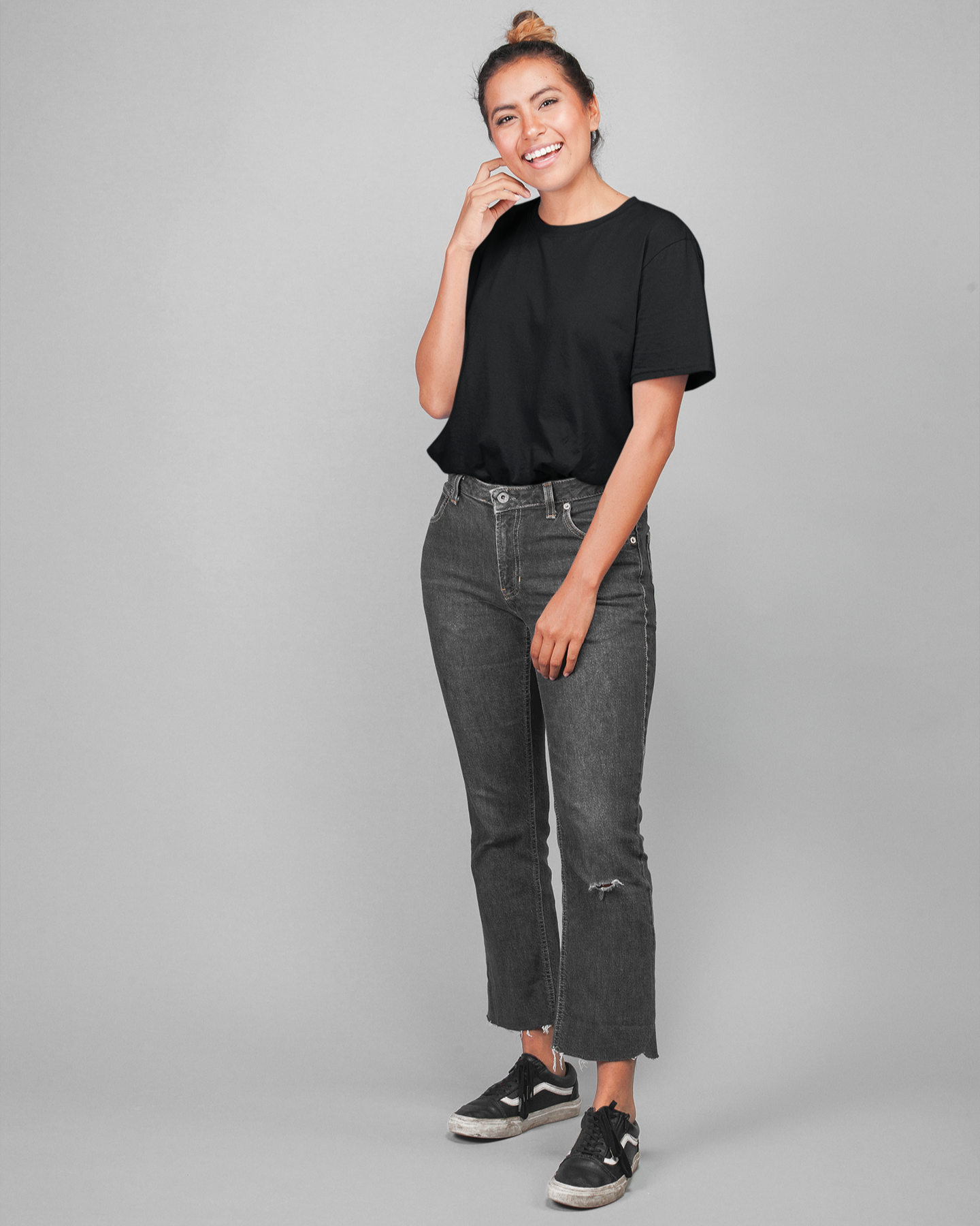 - Jeigu norite, kad marškinėliai kristų laisviau, rinkitės vienu dydžiu didesnius.