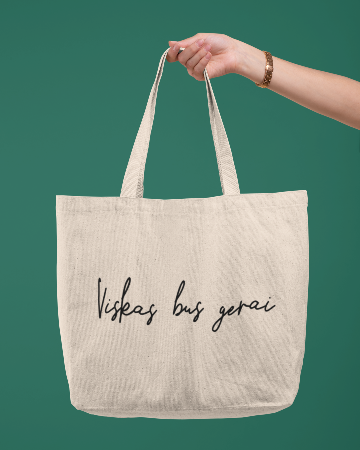 Medvilninis maišelis su spauda - ne tik praktiškas daiktas, bet ir kasdienis priminimas apie tai, kas tau svarbu. Puikiai tiks tiek apsipirkimui, tiek nešantis knygas, kompiuterį ar tiesiog viską, ko gali prireikti dienos bėgyje. Pagamintas iš kokybiškos, ilgaamžės medvilnės, patogaus dydžio, su ilgomis rankenomis - nešiojamas tiek rankoje, tiek ant peties.