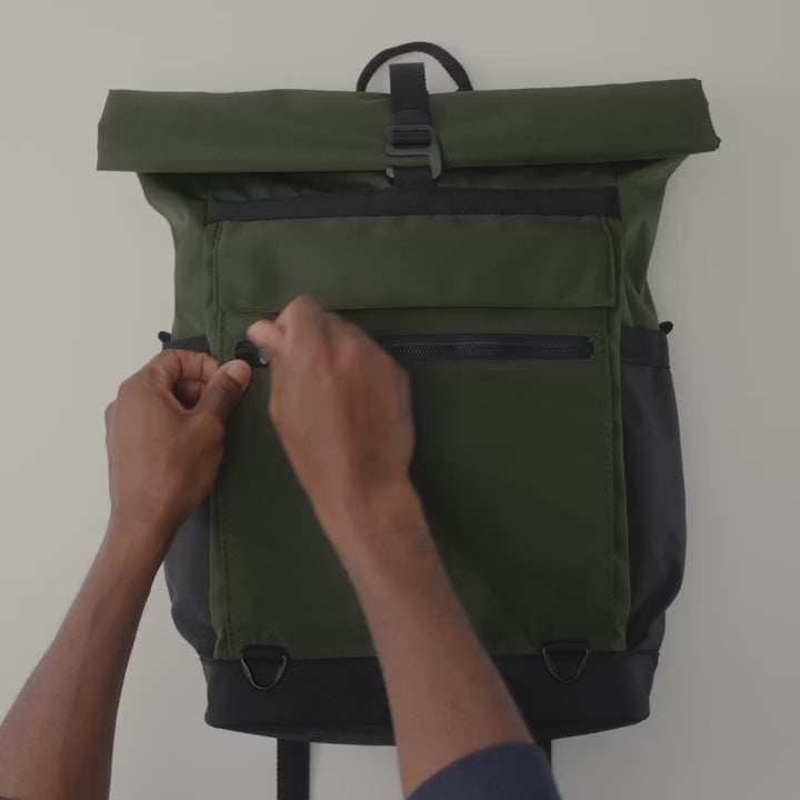 Ieškote patogios, erdvios ir universaliai pritaikomos kuprinės? Ši moderni miesto ir kelionių kuprinė su roll-top užsegimu puikiai tinka tiek aktyviam gyvenimo būdui mieste, tiek trumpoms išvykoms ar darbui kelyje. Pagaminta iš 100 % perdirbto 900D ir 1680D poliesterio, ši kuprinė išsiskiria tvarumu ir atsparumu kasdieniam dėvėjimui.
